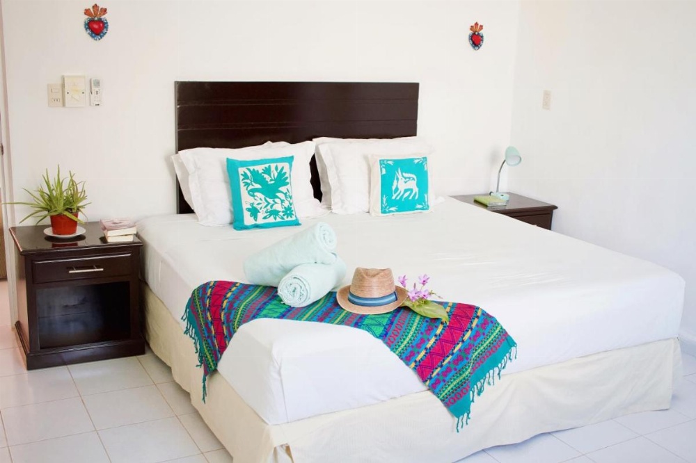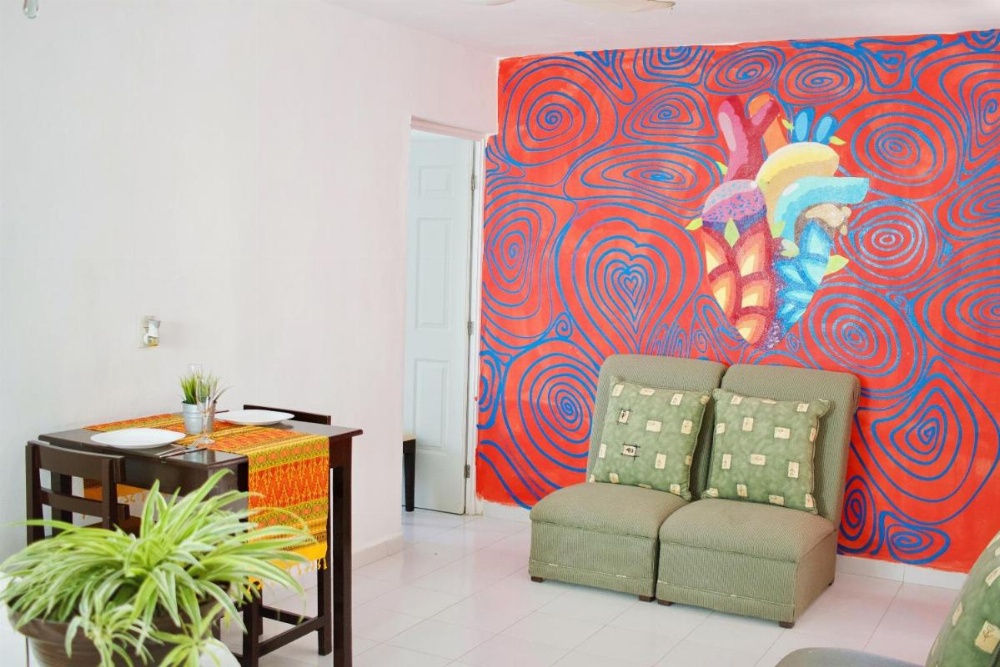 The air-conditioned apartment has a modern style and is equipped with a seating and dining area, kitchen that includes cooking appliances, full bathroom and a bright bedroom.